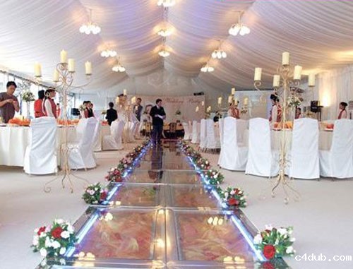 婚庆餐饮喜宴篷房采用高强度铝合金框架,坚固耐用,双面PVC涂层刀刮布,并有多种颜色可选用,抗风防雨,一至两天就可搭建完一个非常大的婚宴篷房,再经过匠人们的精心装饰,很快就会成为一座豪华的非常温馨的婚礼殿-堂。