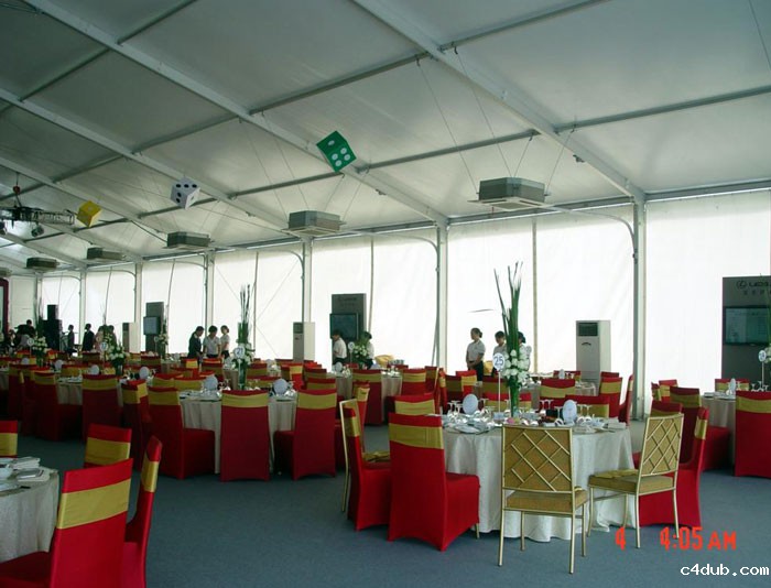 婚礼帐篷采用高强度铝合金框架,坚固耐用,双面PVC涂层刀刮布,并有多种颜色可选用,抗风防雨,一至两天就可搭建完一个非常大的婚礼帐篷,再经过匠人们的精心装饰,很快就会成为一座豪华的非常温馨的婚礼殿-堂。