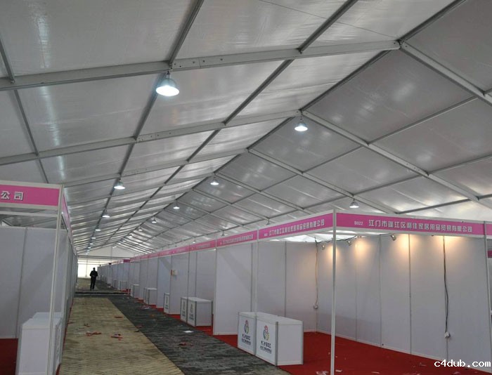 展览帐篷采用高强度铝合金框架,双面PVC涂层篷布,蓬内无任-何支柱。蓬内使用容量宽广,大型展棚有10米到50米多种跨度,单元长度有3米、5米两种,并且有多种高度可供客户选择。