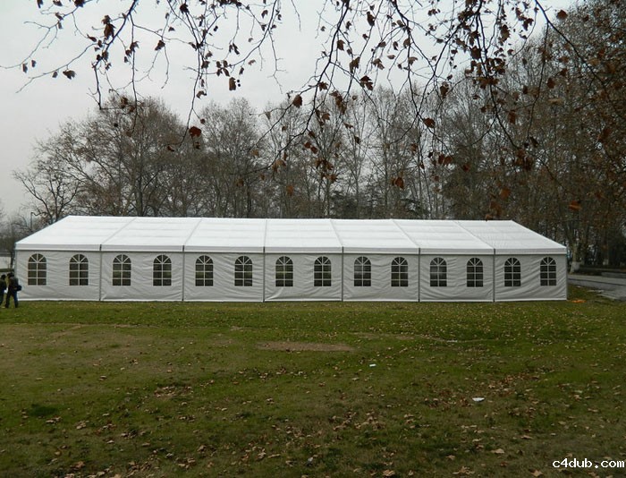 酒席帐篷采用高强度铝合金框架,坚固耐用,双面PVC涂层刀刮布,并有多种颜色可选用,抗风防雨,一至两天就可搭建完一个非常大的酒席帐篷,再经过匠人们的精心装饰,很快就会成为一座豪华的非常温馨的婚礼殿-堂。