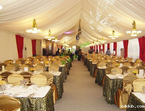 家宴帐篷采用高强度铝合金框架,坚固耐用,双面PVC涂层刀刮布,并有多种颜色可选用,抗风防雨,一至两天就可搭建完一个非常大的家宴帐篷,一家人围坐在一起,更加的热闹,相对于酒店的氛围更加的不一样。