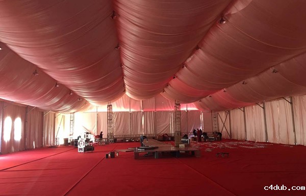 婚庆活动篷房在举办婚礼的时候使用,我们都知道婚庆活动篷房对于搭建的场地是没有特别的要求的,一般像这里的草坪也是可以搭建的,这就是经过在草坪上搭建的婚庆活动篷房,从内部完全看不出是搭建在柔软的草坪上,铺上了红地毯,俨然就是一场婚庆活动的场地。图片上是搭建过程中的图片,搭建好的婚庆活动篷房还应该配上一些配套的设施,起码的酒席桌椅,以及影响设备是必备的。在草坪上搭建婚庆活动篷房,环境更加的美观,让你有不一样的婚礼感受。